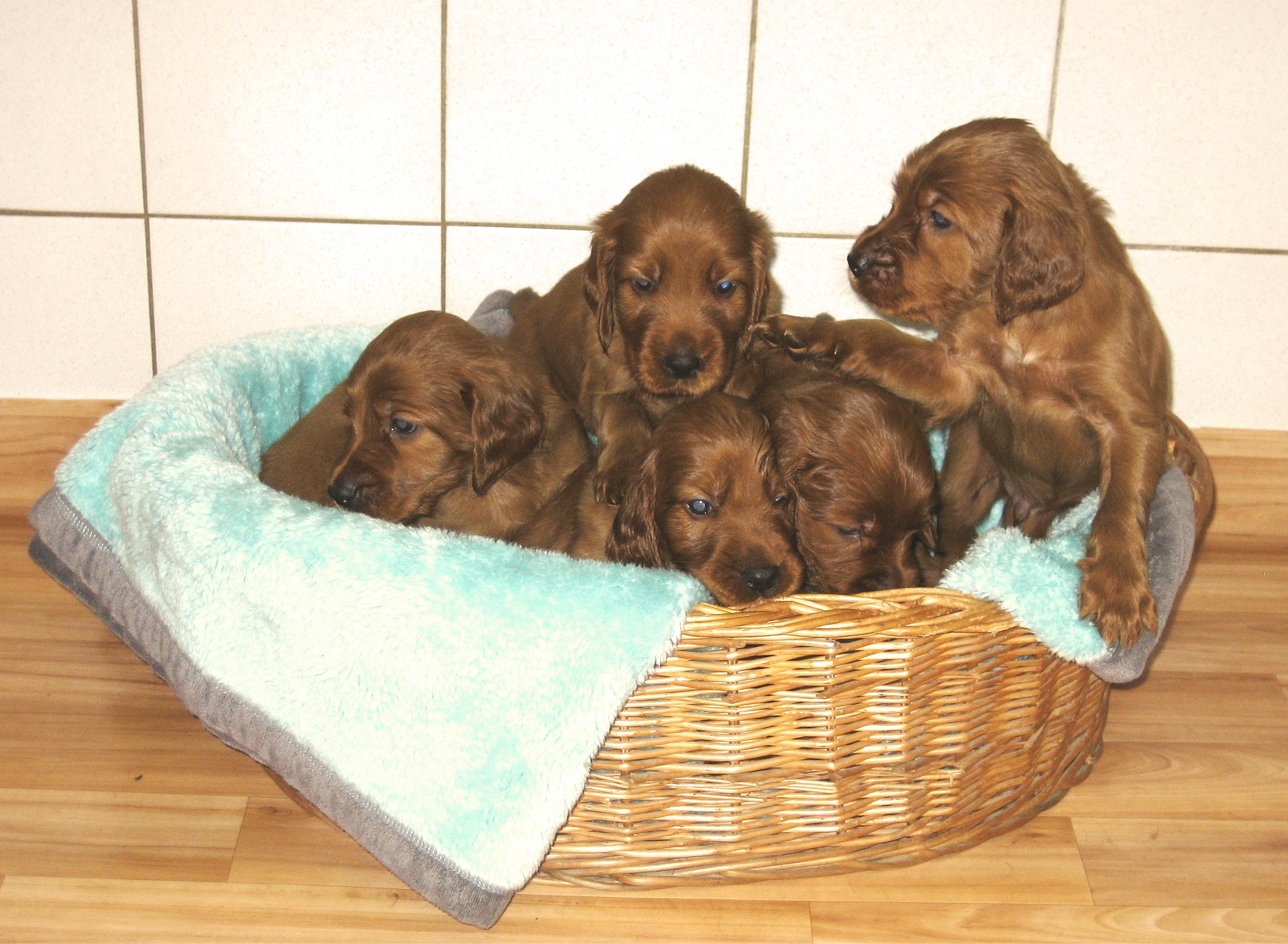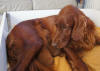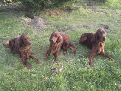 6.9.2011: Die Testresultate unsere Hündinnen sind aus England gekommen. Melinda und Orla sind genetisch frei von PRA-rcd4. Das heißt, das weder sie noch ihre Welpen jemals aufgrund von PRA-rcd 4 erblinden werden. Mehr über diese seit Beginn des Jahres 2011 neu aufgetretene Erbkrankheit beim Irish Setter gibt es hier zu lesen: http://irish-setter-club.de/Hausmitteilungen.PRA.htm