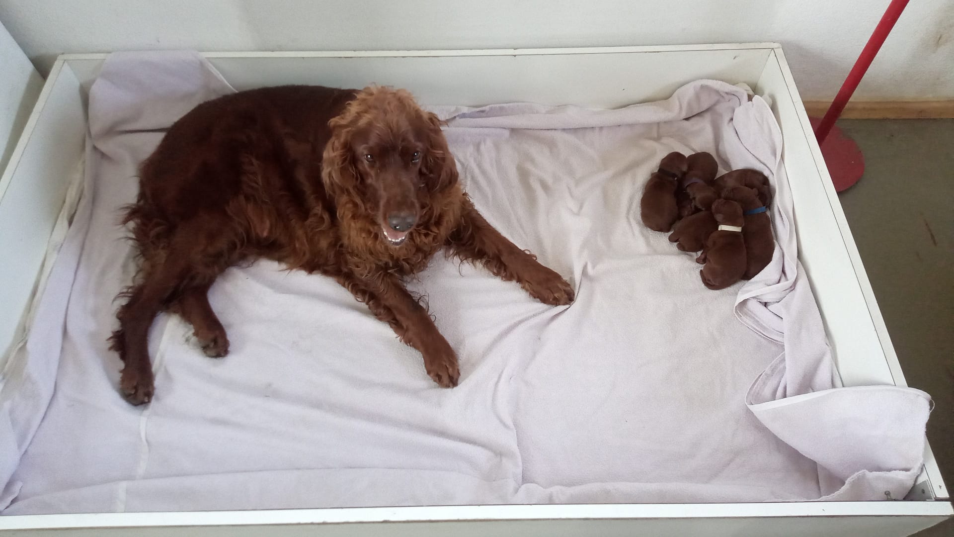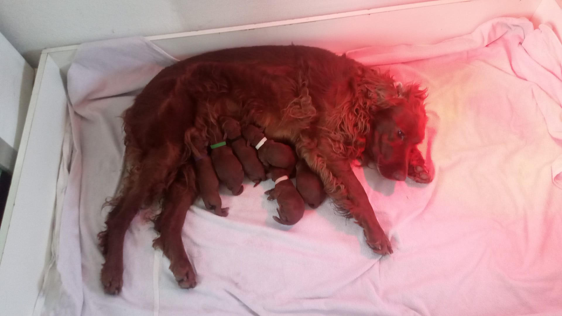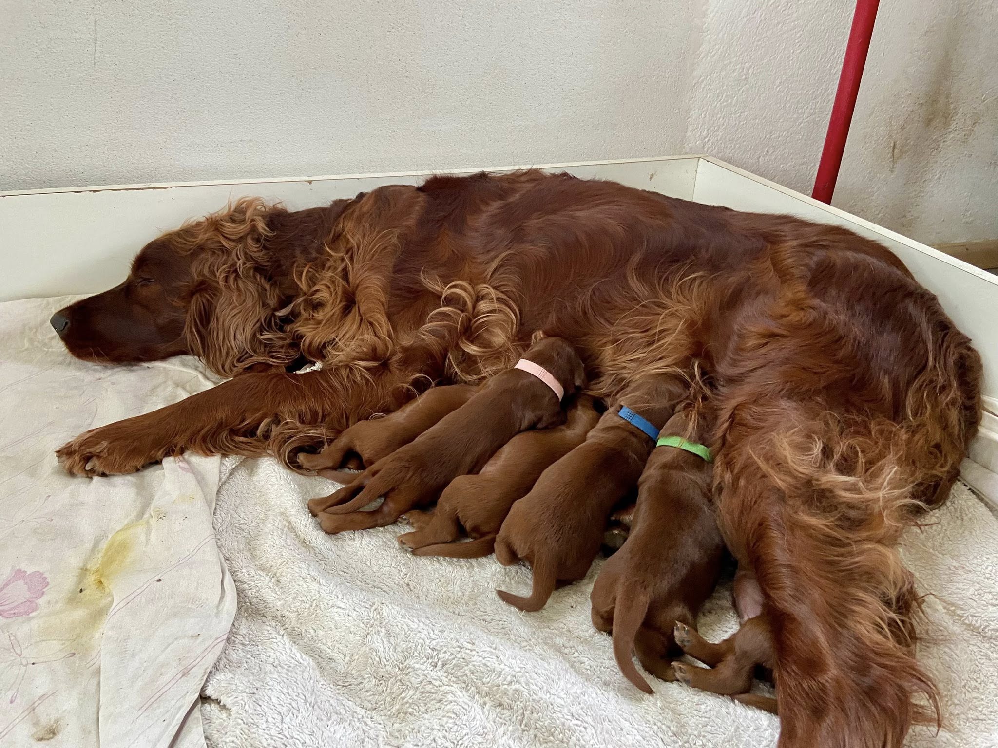 Am 26.2.2026 hat Amy innerhalb von 3 Stunden 6 Welpen nach Aaron Arno Redweed geboren. Den Welpen und Amy geht es bestens.